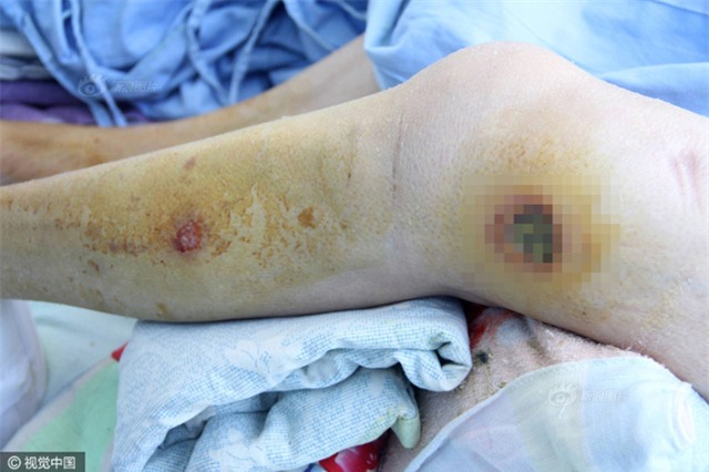 Không chỉ có thế, trên chân, đùi, tay cũng có không ít các vết bỏng với mức độ nặng nhẹ khác nhau.