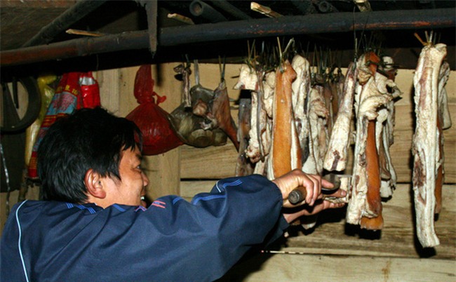 Hình như được phân công từ chiều, anh Khìn và con trai lớn phụ trách bảo vệ rượu, thịt treo trong nhà, còn chị vợ và đứa con nhỏ phụ trách canh phòng vườn rau.
