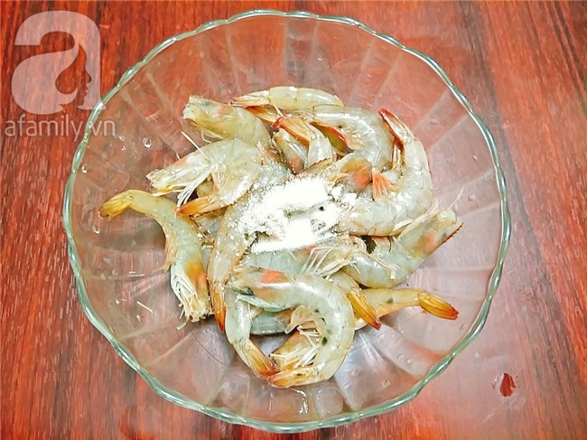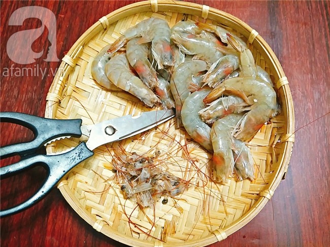 Tôm mua về cắt bỏ phần đầu nhọn và râu tôm sau đó rửa lại sạch sẽ rồi để cho ráo nước.