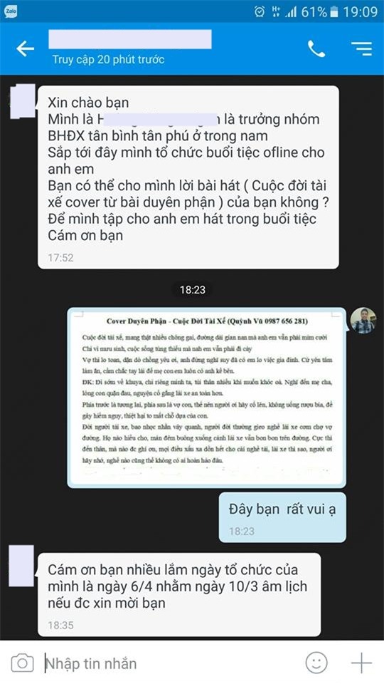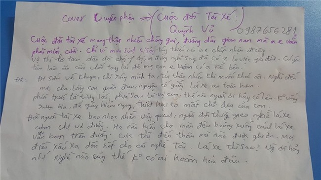 Theo đó, bài hát này có tên "Cuộc đời tài xế". Nội dung ca khúc kể về cuộc đời của người lái xe đầy vất vả, gian nan. Với chất giọng ấm, truyền cảm, nhẹ nhàng, chàng ca sĩ nghiệp dư khiến cộng đồng mạng tặng những lời khen có cánh.