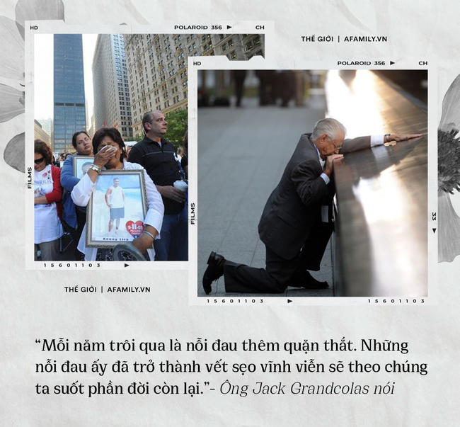 20 năm đã trôi qua nhưng những hình ảnh về thảm kịch 11/9 vẫn còn vẹn nguyên trong tâm trí của biết bao nhiêu người. Thời gian tưởng chừng có thể xóa nhòa phần nào ký ức đau thương, làm nguôi ngoai những nỗi mất mát nhưng với nhiều người, mỗi ngày trôi qua, vết sẹo trong tâm hồn vẫn không ngừng rỉ máu, nước mắt cũng không ngừng rơi.
