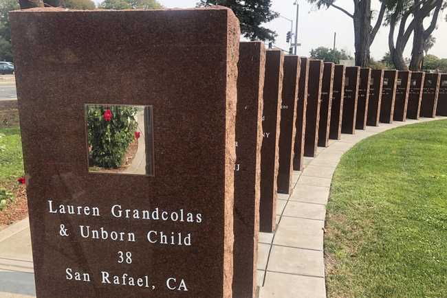 Một tấm bia tưởng nhớ bà Lauren Grandcolas, người đã thiệt mạng trên Chuyến bay 93 của United Airlines cùng đứa con chưa sinh ra đời.