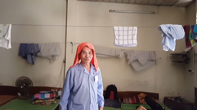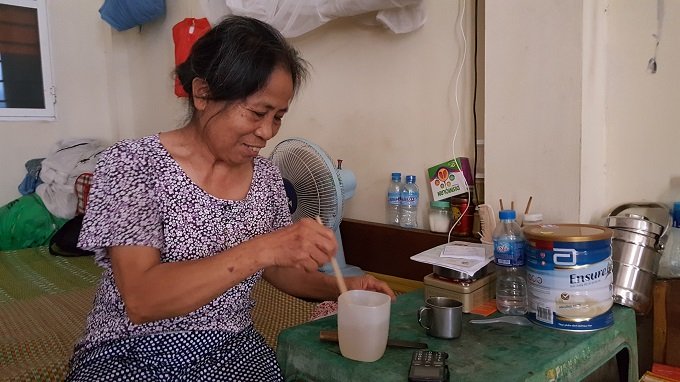 Hai vợ chồng bà khăn gói lên đây thuê giường ở, cho tiện điều trị. Mỗi đợt truyền hóa chất kéo dài từ 5 đến 10 ngày. Để tiết kiệm chi phí, ông bà chỉ dám thuê trọ bên ngoài với giá chỉ 35 nghìn đồng/người.