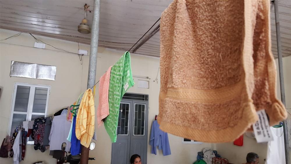 Căn phòng vợ chồng bà Nhượng thuê khoảng 35 m2, bên trong là những chiếc giường được kê san sát nhau. Thời kỳ cao điểm, phòng trọ này chứa đến 30 người bao gồm cả người nhà theo chăm sóc.