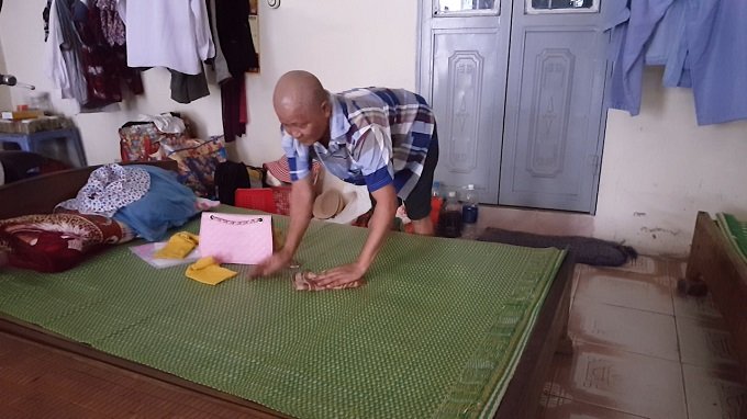 Cách dãy trọ của ông Sáng không xa là dãy trọ của ông Dương Hồng Khanh (54 tuổi, quê Hà Giang) - bệnh nhân u tuyến mồ hôi. Cũng như bao bệnh nhân khác, ông Giang chấp nhận sống trong căn phòng chung, có sức chứa khoảng 20 người.