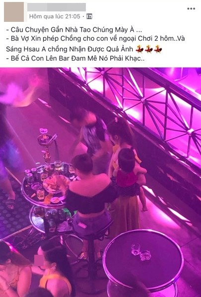 Sự việc bắt đầu từ hình ảnh cô gái có dáng dấp nóng bóng xinh đẹp đang xuất hiện trong một góc quán bar sầm uất nào đó được lan truyền rầm rộ trên mạng xã hội. Với đủ thứ rượu thuốc, sisha, không khí ồn ã kích thích, đã chẳng có gì đáng để nói nếu như trên tay cô nàng không phải là một bé gái nhỏ xíu.