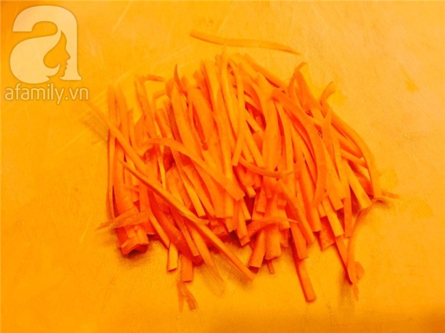 Rau thơm nhặt lá vàng, bỏ cuống rồi rửa sạch, thái khúc 3cm.