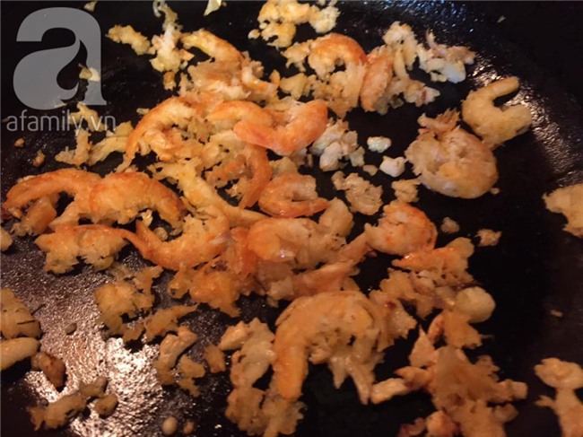 Tôm khô rửa sạch ngâm trong nước khoảng 15 phút cho mềm cho vào cối giã nhỏ.