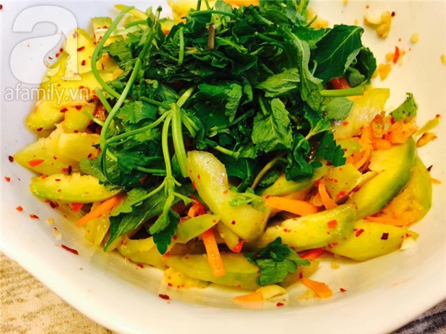 Đổ nộm cóc tôm ra đĩa, rắc thêm lạc, là các bạn đã hoàn thành xong món ăn này rồi.