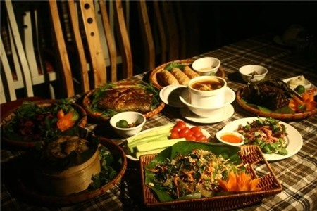 nho nhỏ, trồng đủ thứ rau gia vị phục vụ cho các món ăn. Nộm da trâu