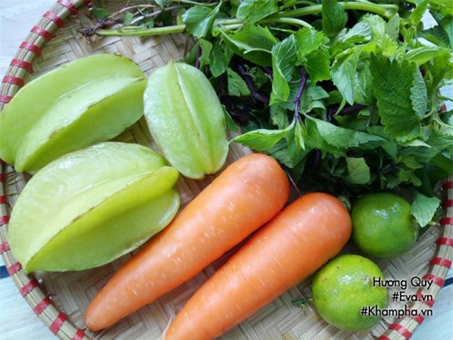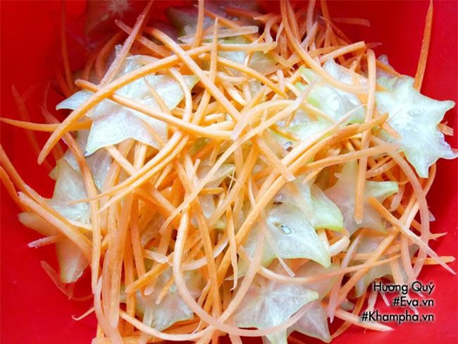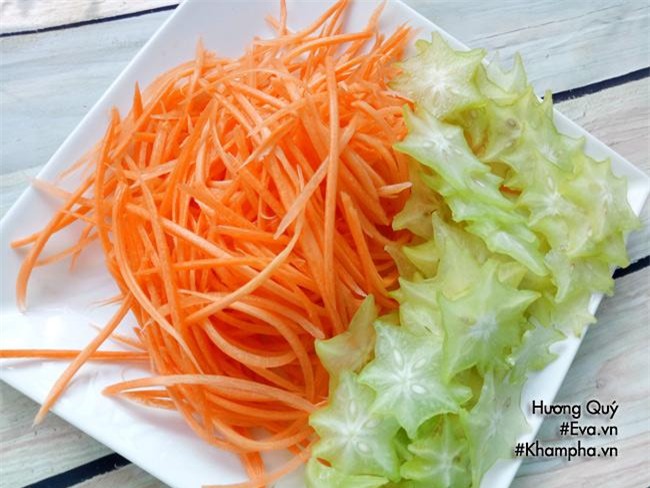 Bước 1: Cà rốt gọt vỏ rửa sạch bào sợi, khế chua cắt bỏ viền, rửa sạch thái mỏng.