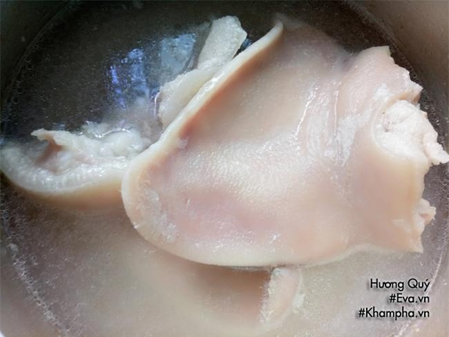 Bước 2: Tai lợn rửa bằng muối, gừng rồi cho vào nồi luộc chín.