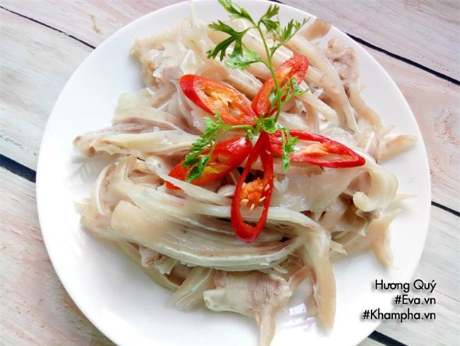 Ngâm tai lợi vào âu nước lạnh rồi vớt ra để ráo và thái mỏng. Như vậy khi ăn tai lợn sẽ giòn ngon và trắng.