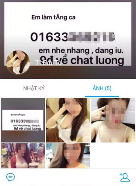 Gái bán dâm thường đăng tải những bức ảnh gọi cảm nhằm câu khách trên Zalo. |