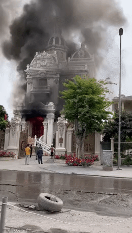 "Tòa lâu đài này có giá trị lớn, cao 4 tầng. Hiện lực lượng chức năng đang làm rõ nguyên nhân vụ cháy", vị này thông tin.