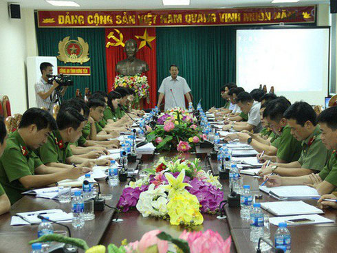 Thượng tướng Lê Quý Vương chỉ đạo ban chuyên án trong sáng nay. Ảnh do công an Hưng Yên cung cấp.