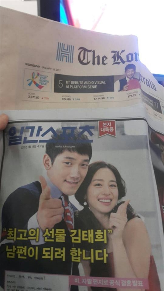 Vào ngày 17/01/2017, tràn ngập trên các trang mạng Hàn Quốc thông tin hot nhất trong giới giải trí từ đầu năm đến giờ qua lời xác nhận sẽ sớm làm đám cưới với Kim Tae Hee của Hoàng tử mắt hí xứ Hàn.