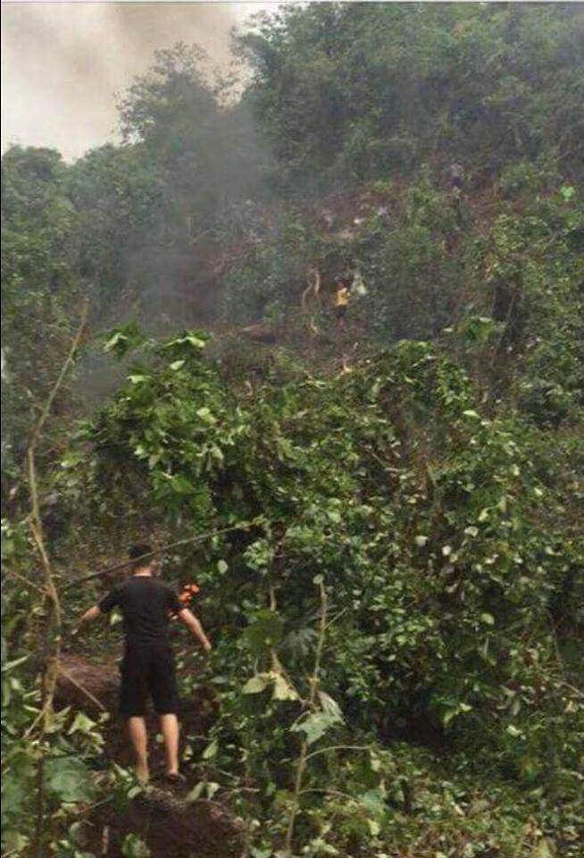 Lúc 13h40, Bí thư xã Nghĩa Yên Phan Phúc Phú thông tin, đoàn của xã đang tới hiện trường. Trời mưa to, địa hình đất đỏ bazan lầy lội, rất khó để tiếp cận nơi chiếc máy bay gặp nạn.