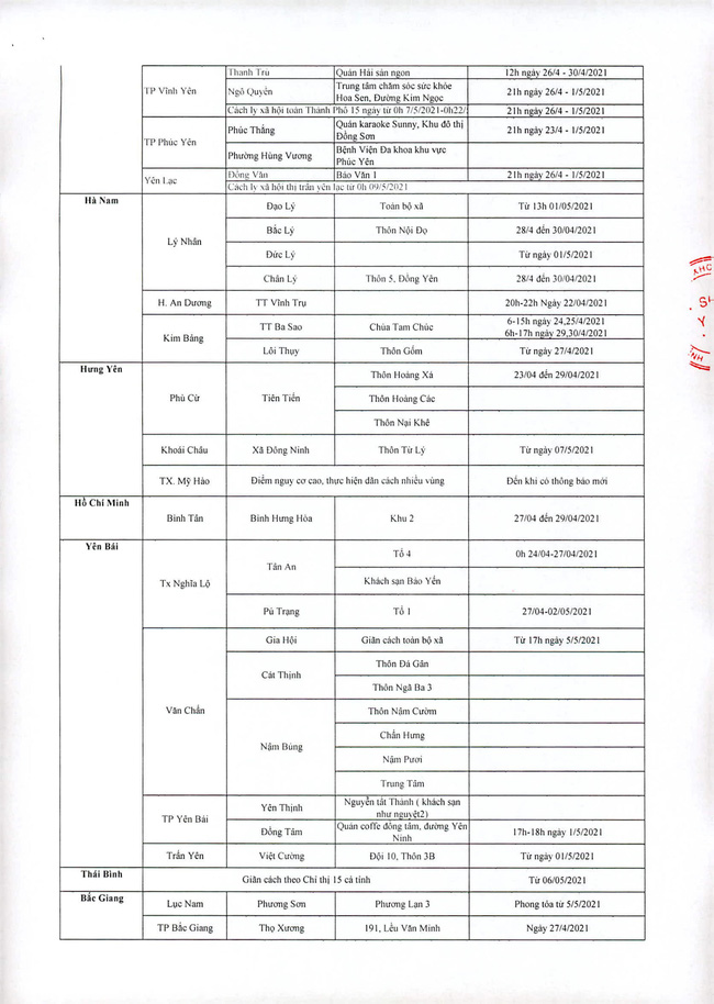 3. Người đến/trở về từ các tỉnh thành phố có ca nhiễm trong cộng đồng (Bao gồm: Hà Nội, Đà Nẵng, Bắc Ninh, Vĩnh Phúc - theo danh sách kèm theo);