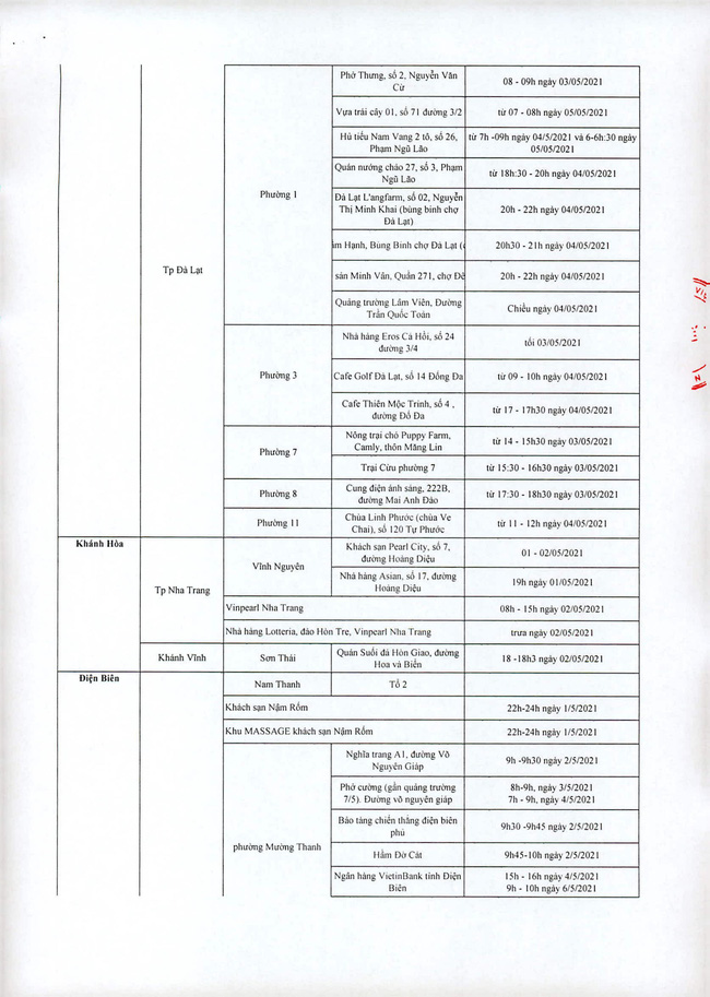 4. Người đến các địa điểm do Bộ Y tế thông báo truy tìm vào cùng thời điểm ca bệnh xác định có mặt nơi đó;