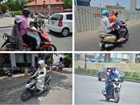 Với mức nhiệt cao "ngất ngưởng" cùng hơi nóng từ khói xe, lòng đường bốc lên, người tham gia giao thông luôn trong tình trạng mệt nhoài