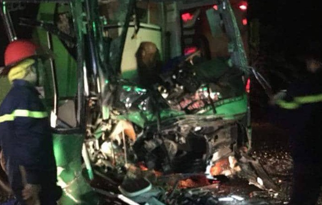 Tại hiện trường, đầu xe khách Đức Đạt bẹp dúm; phần đuôi xe khách T.A bị bể nát, nhiều ô cửa kính bị bể.