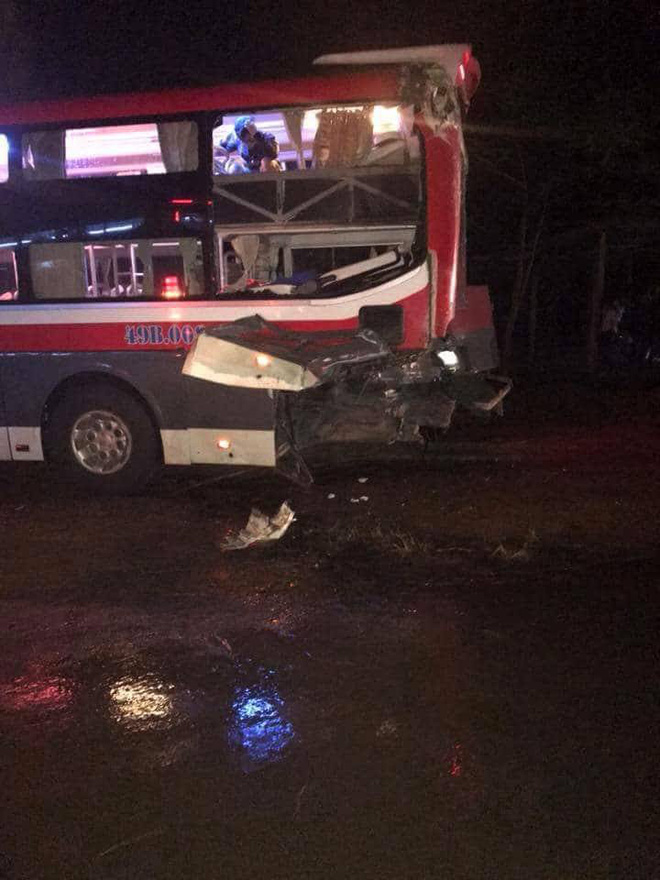 Cùng lúc này, xe khách giường nằm của hãng Đức Đạt BKS: 81B-016.57 (chạy tuyến Gia Lai – TP Hồ Chí Minh) do tài xế Lê Văn Phương (SN 1977, ngụ Gia Lai) điều khiển chở theo khoảng 40 hành khách, lưu thông cùng chiều tông mạnh từ phía sau xe 49B.