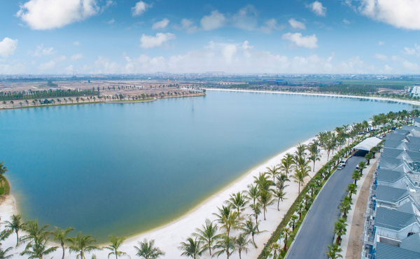 Hồ lớn trung tâm 24,5ha với bãi cát trắng trải dài là một trong những “siêu phẩm” của Vinhomes Ocean Park đang “làm mưa làm gió” trong thời gian qua. Được biết, bờ cát trắng mịn tại đây rộng đến 35m và được kỳ công vận chuyển từ vịnh biển Nha Trang, trải qua quá trình sàng sẩy nhiều lớp để tạo độ mịn và trắng nhất, mang đến hiệu ứng thẩm mỹ và cảm quan hoàn hảo khi dạo quanh hồ. Điều đặc biệt là đại cảnh quan “có một không hai” này đã được hoàn thiện chỉ trong 70 ngày, kiến tạo một kỳ tích mang thương hiệu Vinhomes Ocean Park.