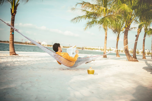 Dọc theo bờ cát là hàng dừa cao vút và xanh mát đã được ươm trồng ngay khi khởi công dự án, tô điểm thêm nét thơ mộng, yên bình cho bức tranh thiên đường nhiệt đới giữa thành phố biển hồ. Lần đầu tiên ngay giữa thủ đô Hà Nội, người dân có thể tận hưởng cảm giác vùi chân dưới cát mịn, thảnh thơi tựa lưng bên gốc dừa và ngắm nhìn trọn vẹn vẻ đẹp của thiên nhiên.