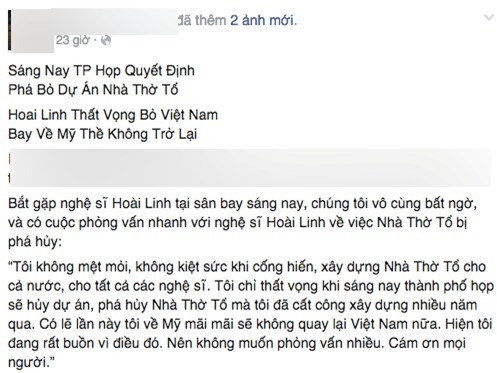 Mới đây, cư dân mạng bất ngờ truyền tai nhau tin đồn ngôi đền thờ Tổ mà Hoài Linh kỳ công xây dựng ở quận 9 Tp. Hồ Chí Minh có nguy cơ bị dỡ bỏ. Thông tin này khiến nam danh hài vô cùng thất vọng và có ý định rời bỏ Việt Nam trở về Mỹ.