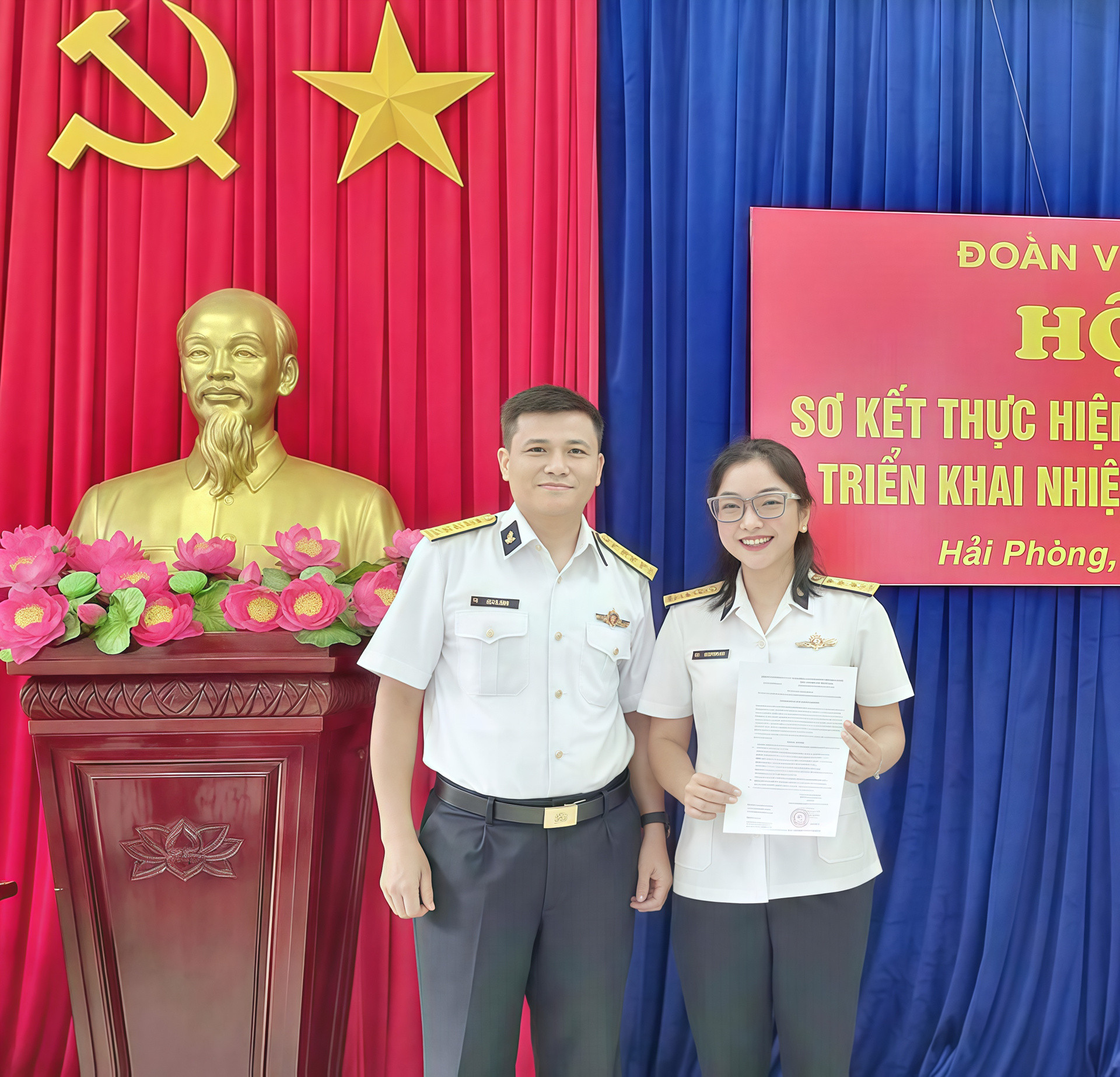 Phương Anh nhận quyết định thăng quân hàm. Ảnh: NVCC