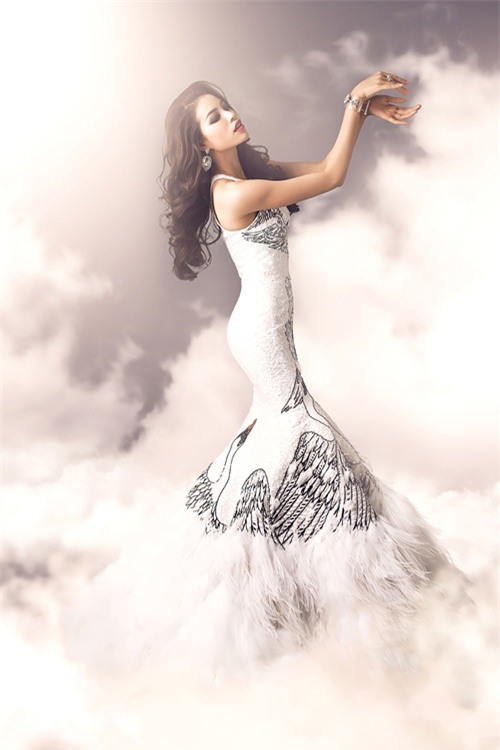 Khi thiết kế chiếc đầm dạ hội cho Hương, tôi nghĩ đến một chiếc đầm vừa tôn lên dáng người, vừa nổi bật nhưng cũng phải có ý nghĩa. Vì vậy hình ảnh đàn thiên nga sải cánh bay lên trời chính là lời gửi gắm và chúc cho Hương Phạm sẽ thực sự tỏa sáng và vươn xa trong cuộc thi lần này.
