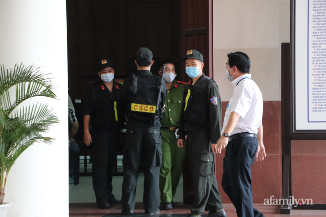 Các bị cáo được áp giải vào tòa dưới sự giám sát chặt chẽ của cơ quan chức năng.