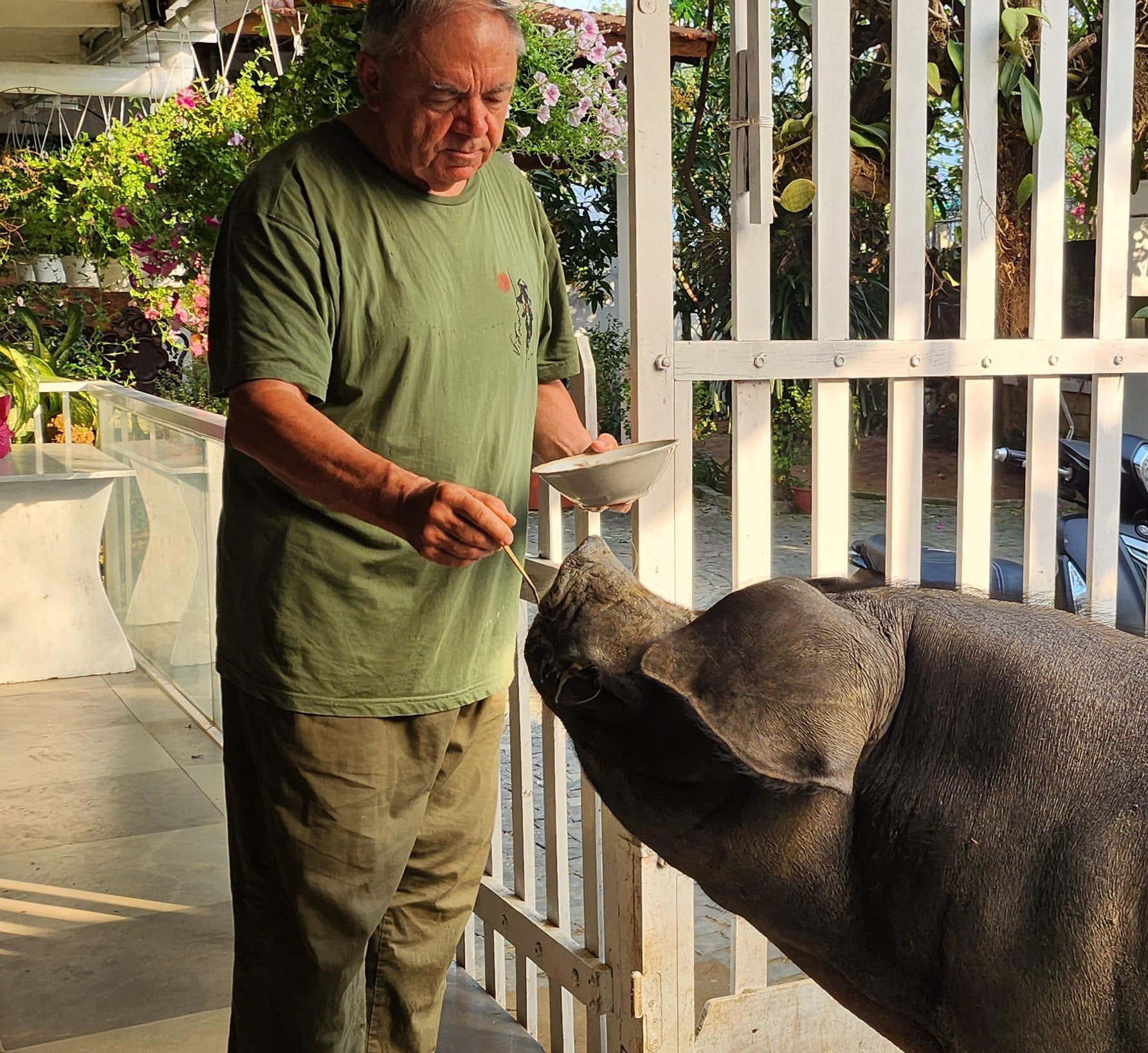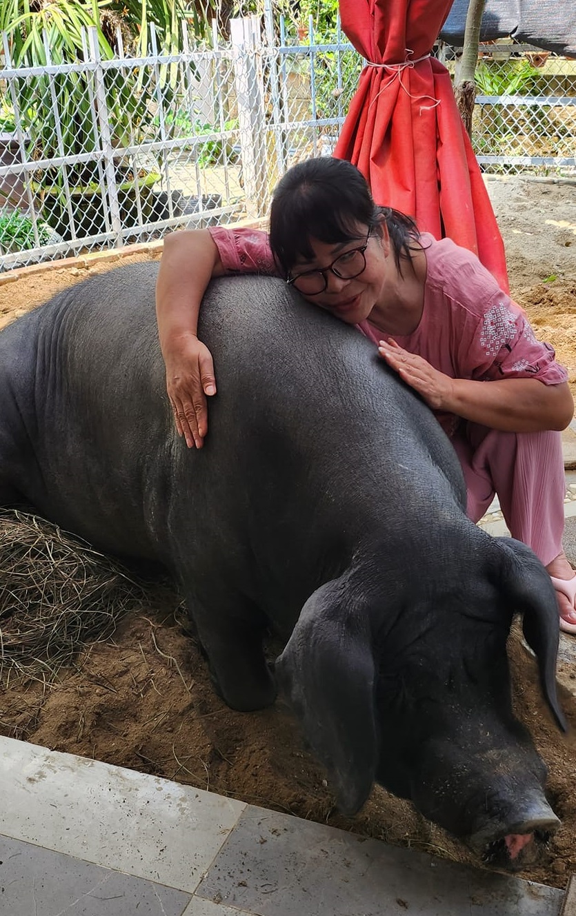 Danh ca cùng chồng người Pháp sống ở Hội An nhiều năm qua, vui vẻ trồng cây, nuôi chó, lợn...