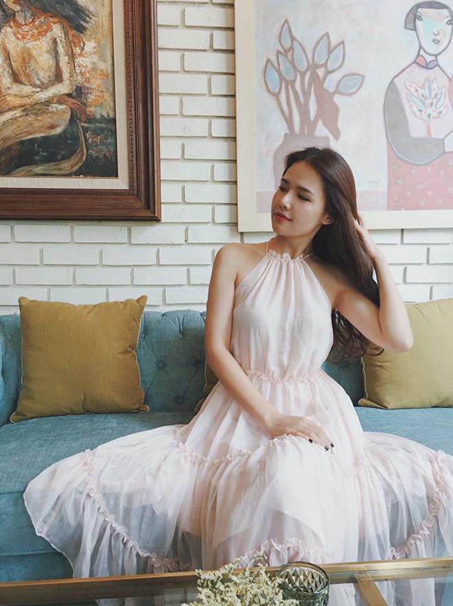 Hình ảnh hiếm hoi cô xuất hiện với mẫu váy dài thướt tha, cổ yếm được fan vô cùng thích thú.