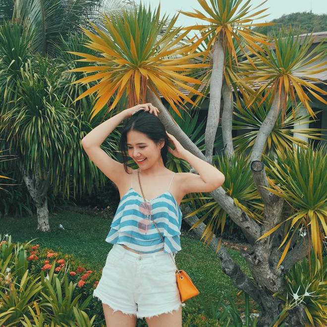 Cô cũng bắt kip xu hướng chấm bi đang được nhiều ngôi sao yêu thích trong chuyến du lịch mới đây.