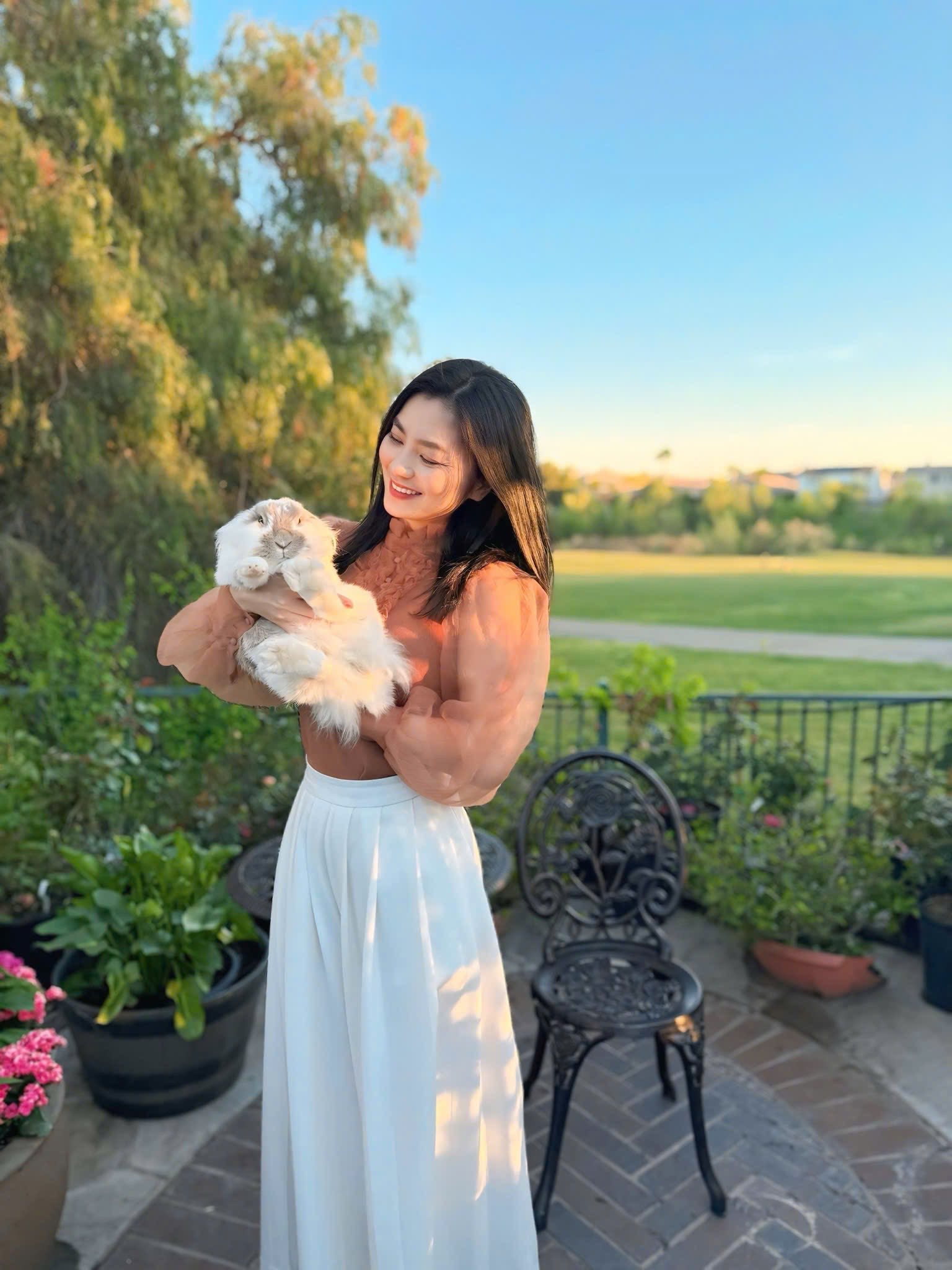 Từ đầu năm 2023, gia đình Diệu Hương chuyển đến biệt thự mới rộng rãi, khang trang hơn. Cơ ngơi này có sân vườn, bể bơi, bao quanh bởi nhiều cây cối. Trong vườn, vợ chồng Diệu Hương làm một "công viên thu nhỏ" cho các con thỏa sức chơi đùa.