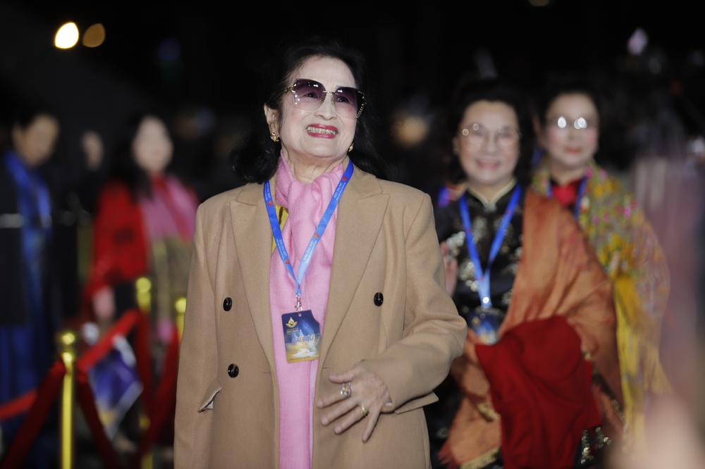 NSND Trà Giang thu hút nhiều sự quan tâm khi tham dự Lễ khai mạc Liên hoan phim Việt Nam lần thứ 23 tại Đà Lạt