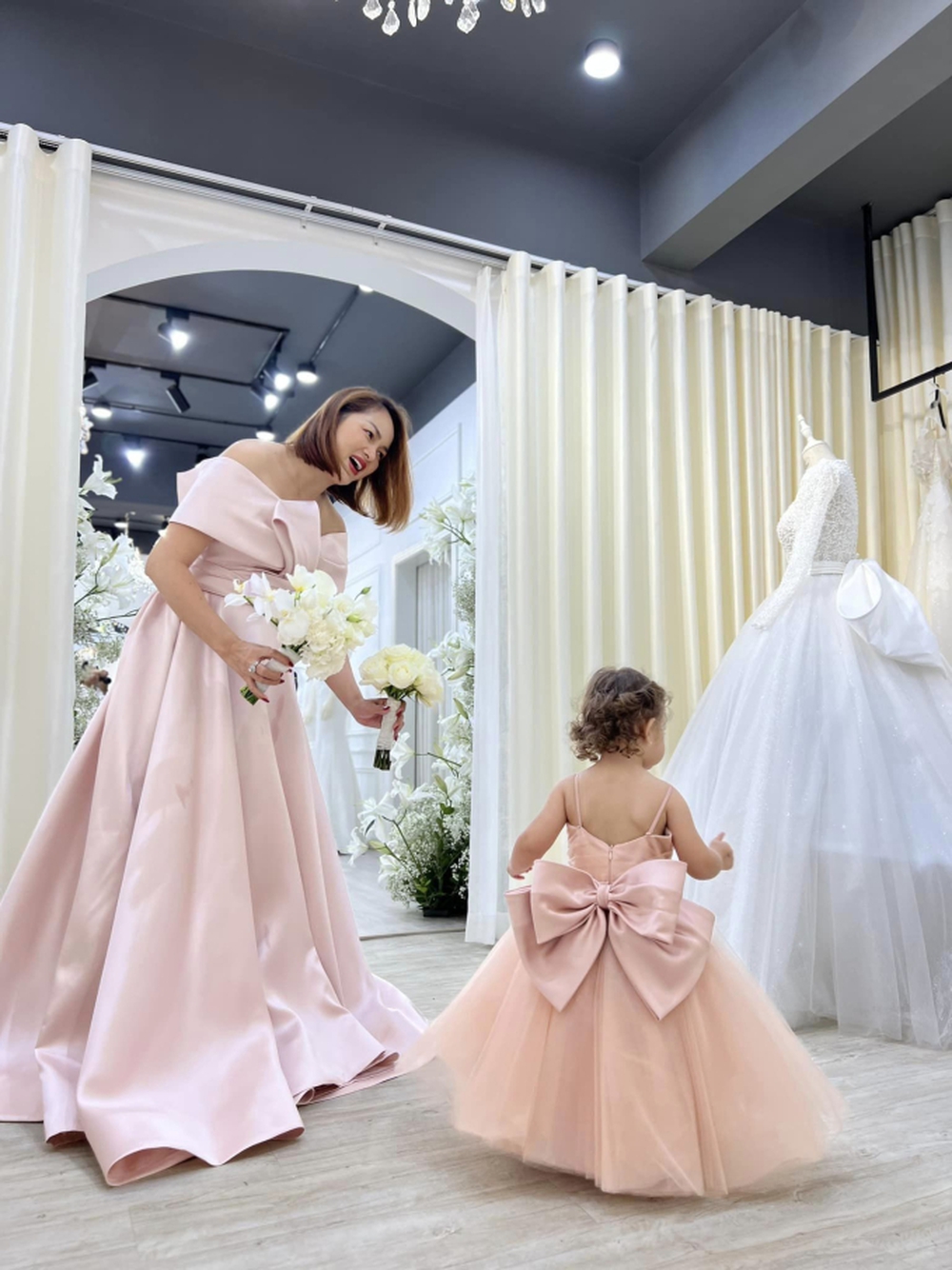 Nữ diễn viên liền lên tiếng cho biết chưa có chú rể, chỉ là đang thử váy cùng con gái