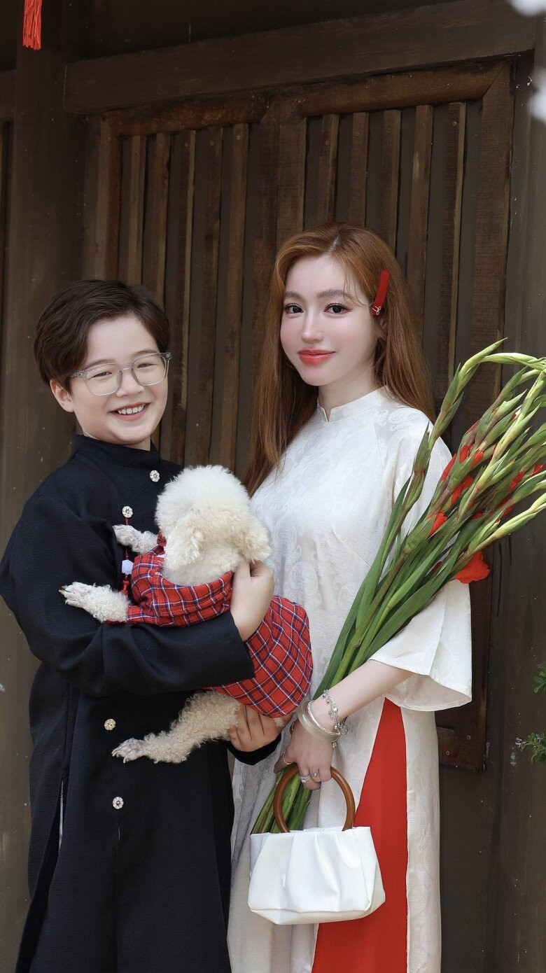 Đứng cạnh cậu quý tử lai Tây 11 tuổi, Elly Trần không khác gì chị gái của con. Bên dưới phần bình luận, ai nấy đều xuýt xoa nhan sắc của cặp mẹ con. Trước đây, khi đưa các con đến trường học, Elly Trần cũng nhiều lần khiến các bạn trong lớp con nghĩ mẹ là chị gái.