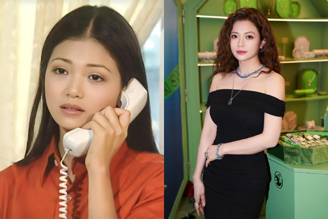 "Giao diện" của Kiều Anh ấn tượng với bởi nét "lão hóa": Mái tóc bạc trắng, cặp kính tròn cổ điển, áo dài gấm xanh pastel, điểm xuyết chuỗi ngọc trai tinh tế. Tổng thể tạo cảm giác vừa già dặn vừa thanh lịch, lại sang chảnh.