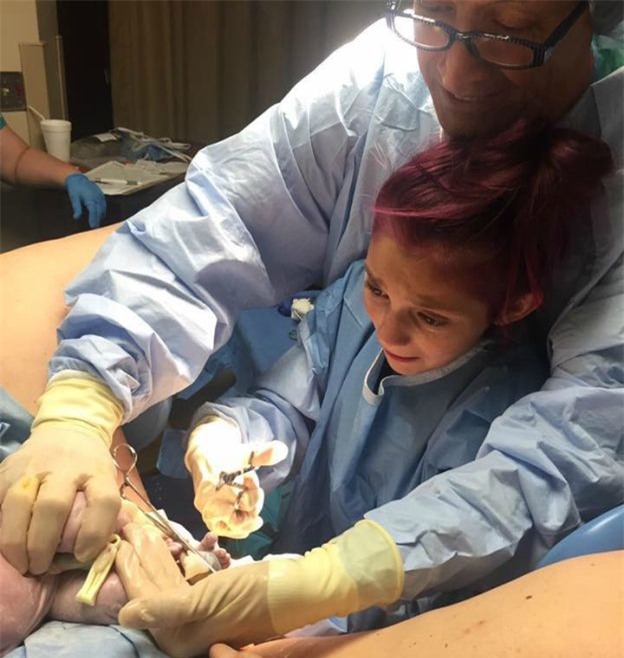 con, các bác sĩ đã cho cô bé trực tiếp tham gia ca sinh nở đặc biệt này.