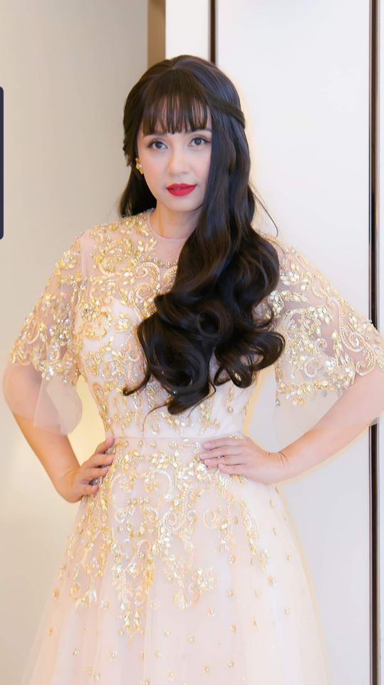 Trong loạt ảnh mới diện đầm dạ hội lấp lánh, mái tóc dài chấm hông - 'Mỹ nhân màn bạc' thập niên 90 Việt Trinh như trở lại với nhan sắc của vài chục năm về trước.