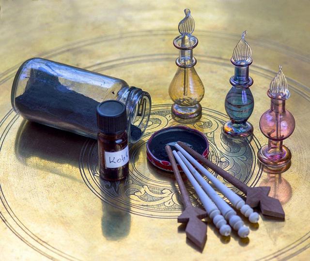 Người ta thường vẽ màu đen bằng Kohl làm từ khoáng chất galena cho mí mắt trên và vẽ màu xanh lá từ Kohl malachit xanh cho mí mắt dưới.