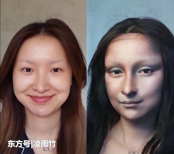 Vũ Nha nổi tiếng với bức ảnh trang điểm giống nàng Mona Lisa.