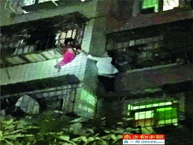 Một cô gái trẻ người Trung Quốc đã không nề hà nguy hiểm, trèo 5 tầng nhà để cứu một cháu nhỏ sắp rơi xuống đất.