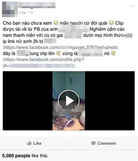 học, nữ sinh 15 tuổi đã bị người yêu tung clip sex và phát tán lên mạng