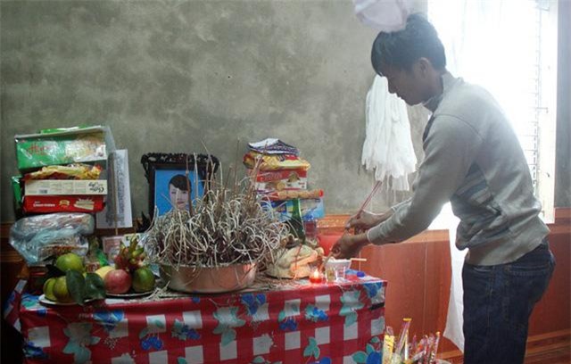Anh Phạm Đình Minh bên bàn thờ lập vội của người con gái xấu số.