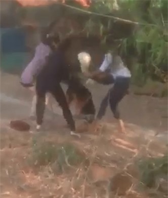 Hương bị nhóm bạn đánh đập dã man. Ảnh: Cắt từ clip. |