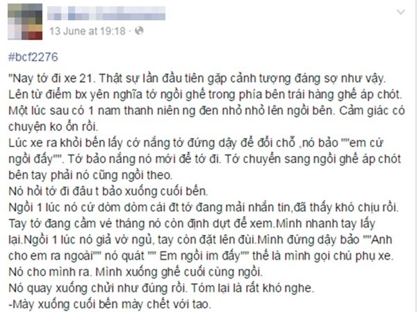 trường hợp một cô gái bị quấy rối tương tự khi đi xe 16 từ bến Nước Ngầm